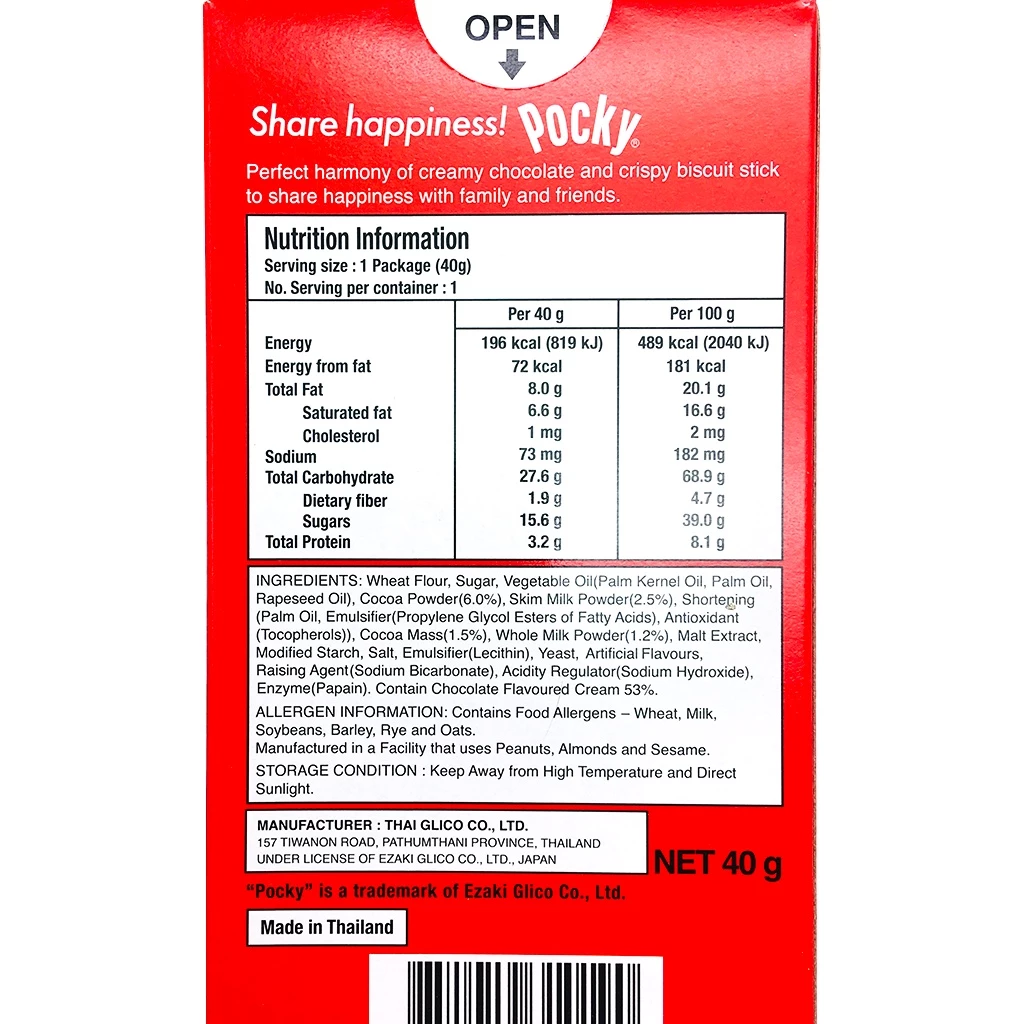 Ingredients: Wheat Flour, Sugar, Vegetable Oil, Cocoa Powder, Skim Milk Powder, Shortening, Cocoa M, Whole Milk Powder, Malt Extract, Salt, Yeast, Conns Permitted Modified Starch, Emulsifier, Flavours, Baking Powder, Acidity Regulator, and Enzyme.